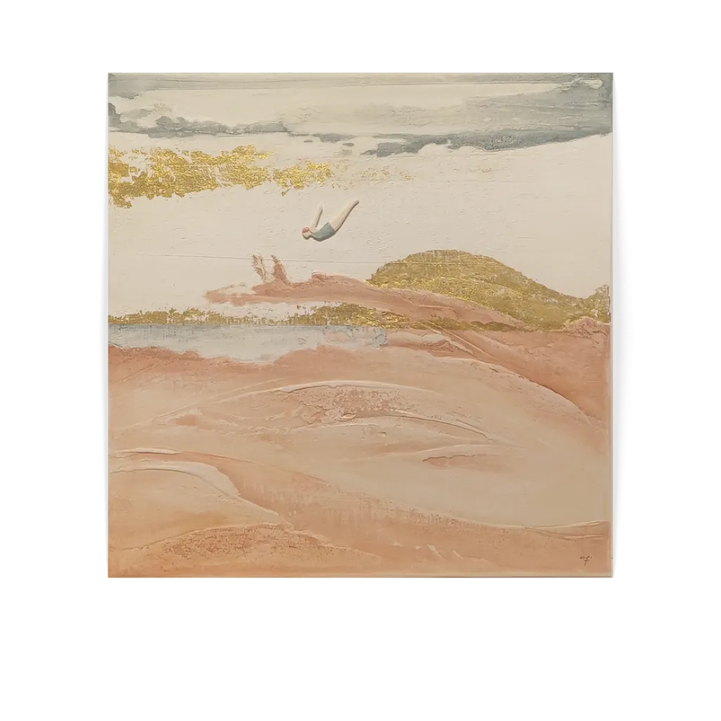 This unique and original contemporary artwork "A capofitto" has been created by the contemporary artist Gaia Roma. The artist used mixed medium to create this figurative, large size painting.