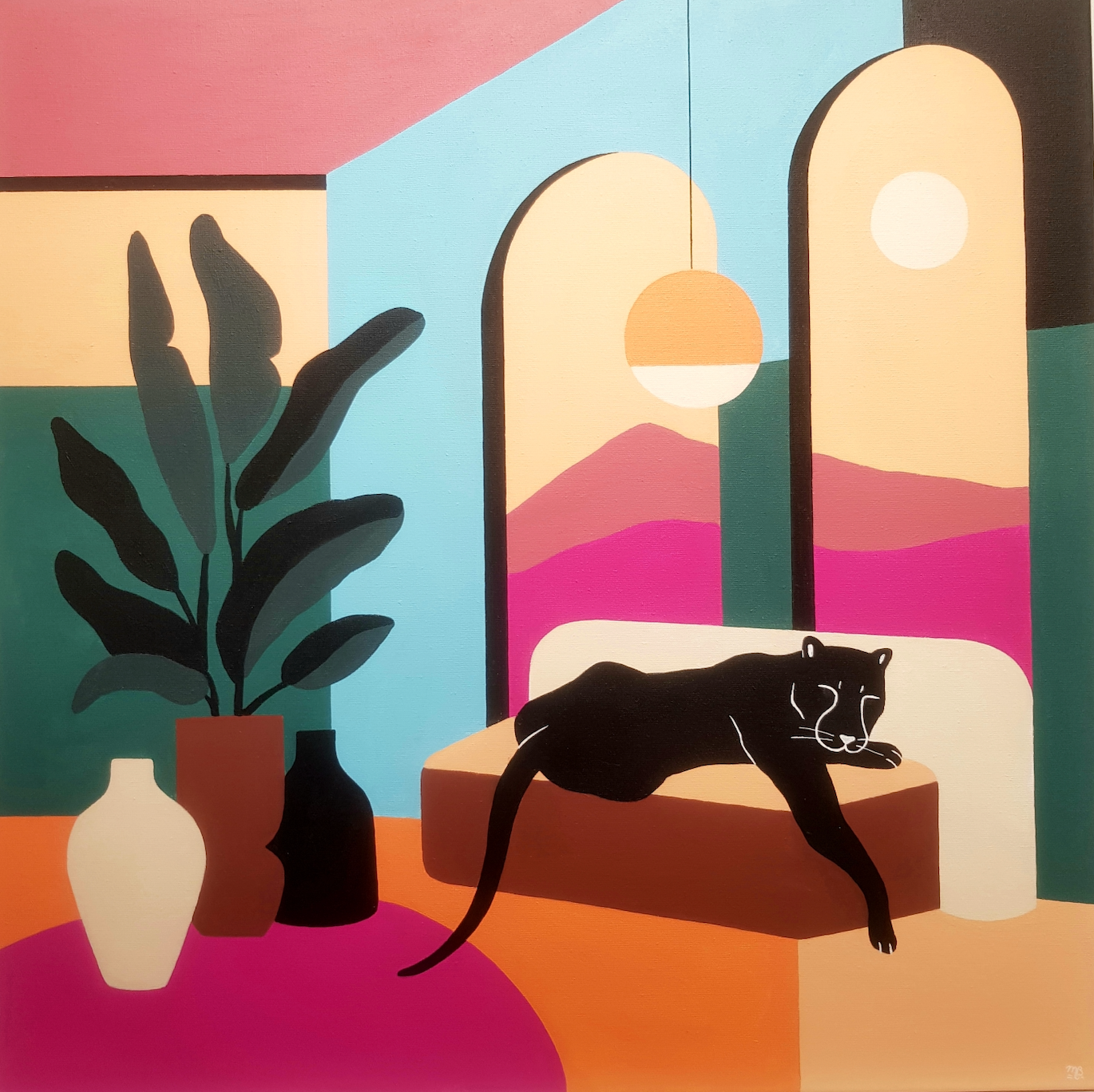 This unique and original contemporary artwork "A Colourful Dream" has been created by the contemporary artist Mariah Birsak. The artist used acrylic medium on canvas to create this figurative large size painting.