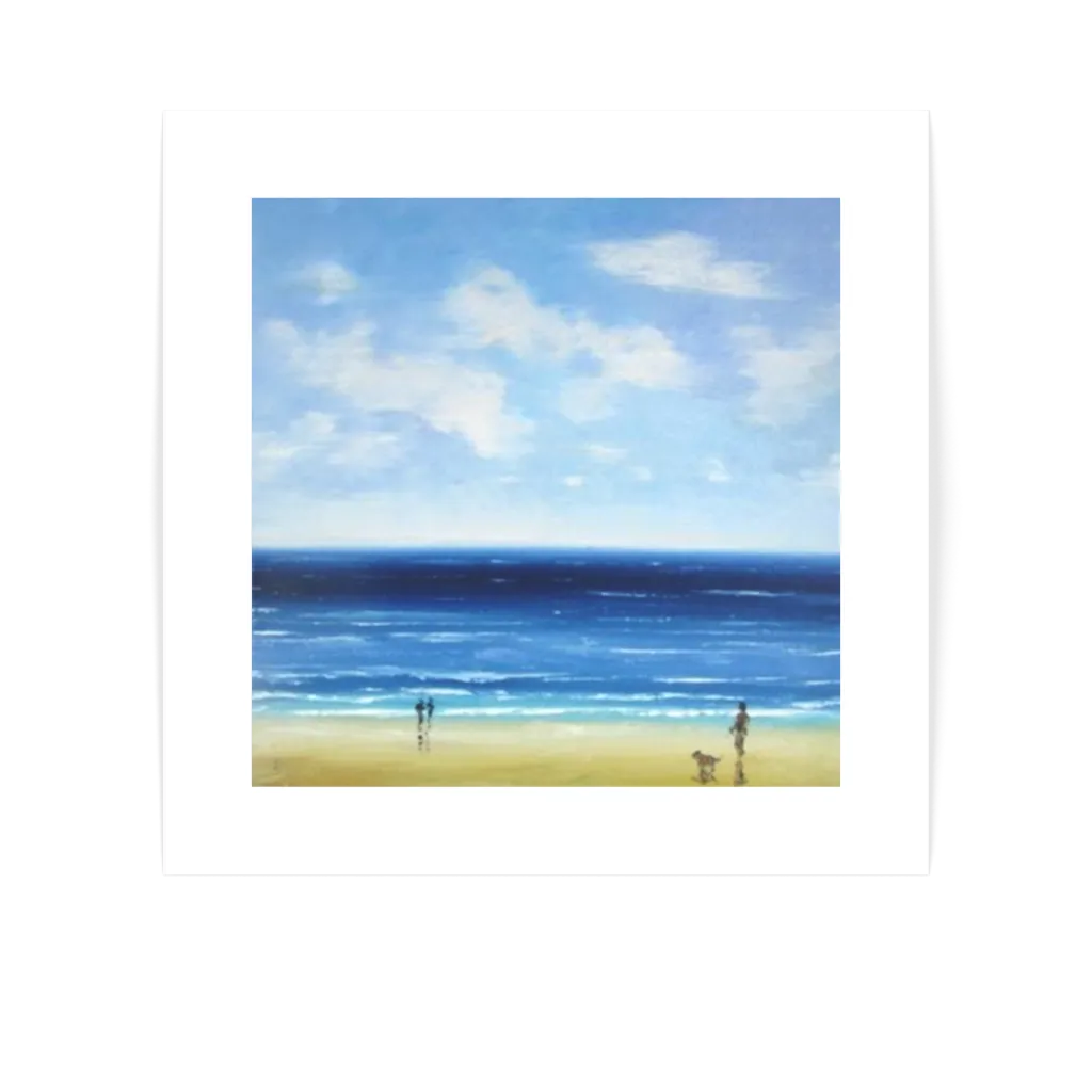 This unique and original contemporary artwork "Le monde est vaste en bord de mer" has been created by the contemporary artist Hanniet. The artist used oil medium on canvas board to create this figurative, small size painting.