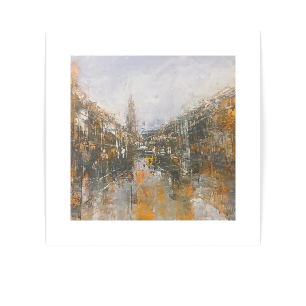 This unique and original contemporary artwork "Atmosphère automnale" has been created by the contemporary artist Philippe Davroux. The artist used oil medium on stretched canvas to create this impressionist, small size painting of Haarlem.