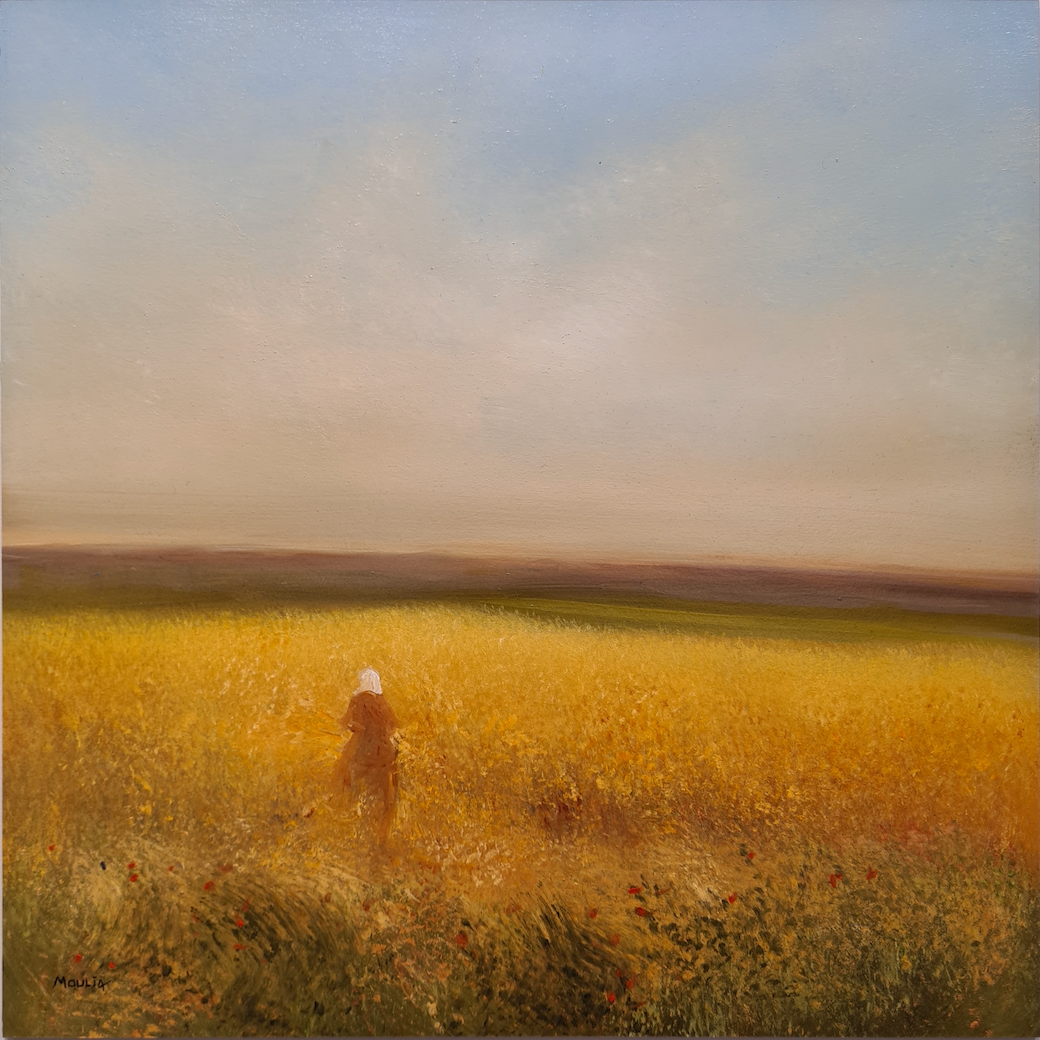 This unique and original contemporary artwork "A l'orée des blés" has been created by the contemporary artist Francis Moulia. The artist used oil to create this special, small size painting.