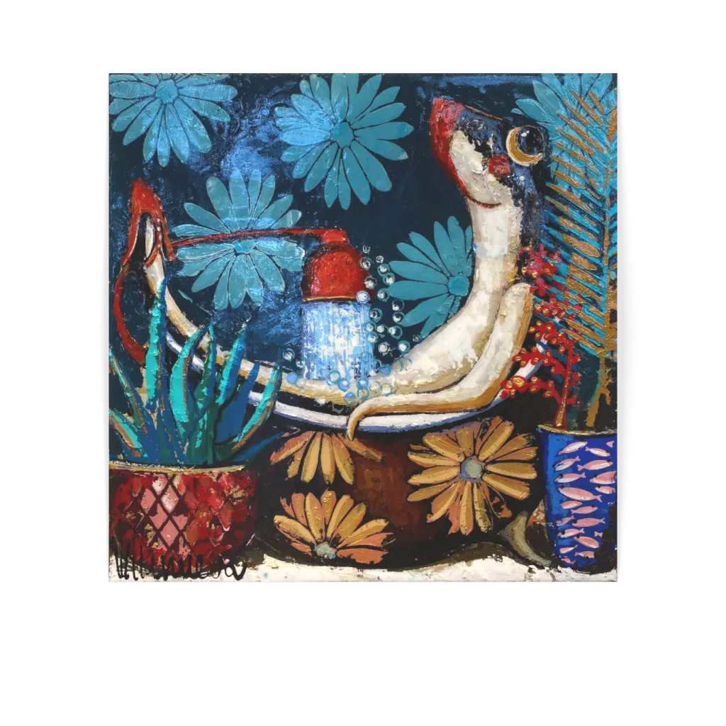 This unique and original contemporary artwork "Baño Relajante" has been created by the contemporary artist Villanueva Puigdelliura Natalia. The artist used mixed medium on Canvas to create this Figurative, Large size painting.