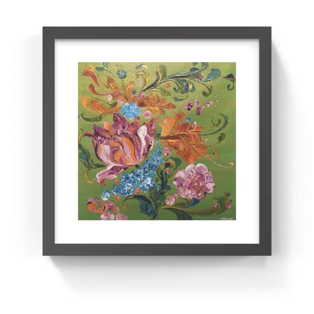 This unique and original contemporary artwork "Bouquet automnal" was created by contemporary artist Florence Amblard. The artist used various painting techniques to create this small-format painting in a singular style.