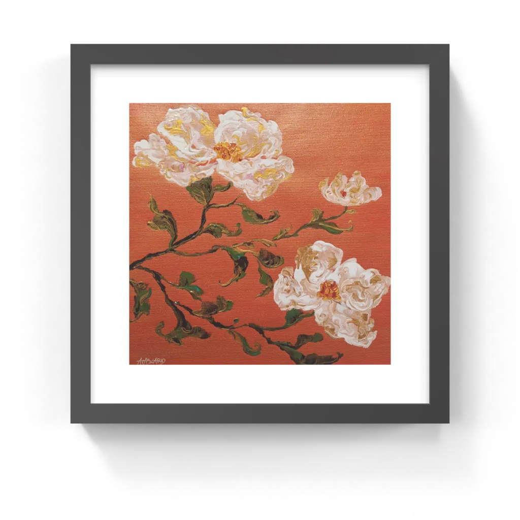 This unique and original contemporary artwork "Belles pivoines" was created by contemporary artist Florence Amblard. The artist used various painting techniques to create this small-format painting in a singular style.