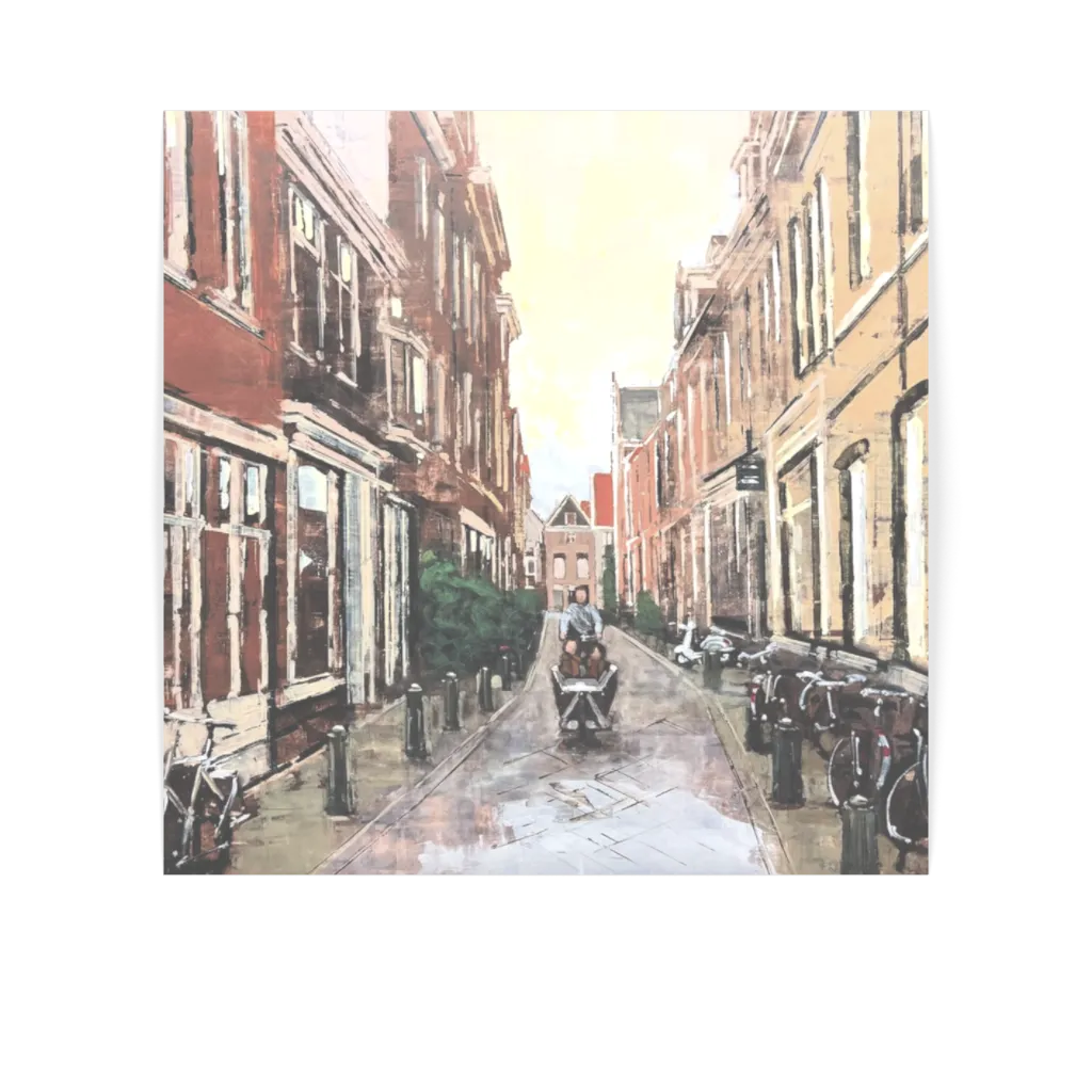 Original artwork "Bicycle on Ridderstraat" by artist Adrien Faveau in size 80x80cm. Medium used is oil on wood .