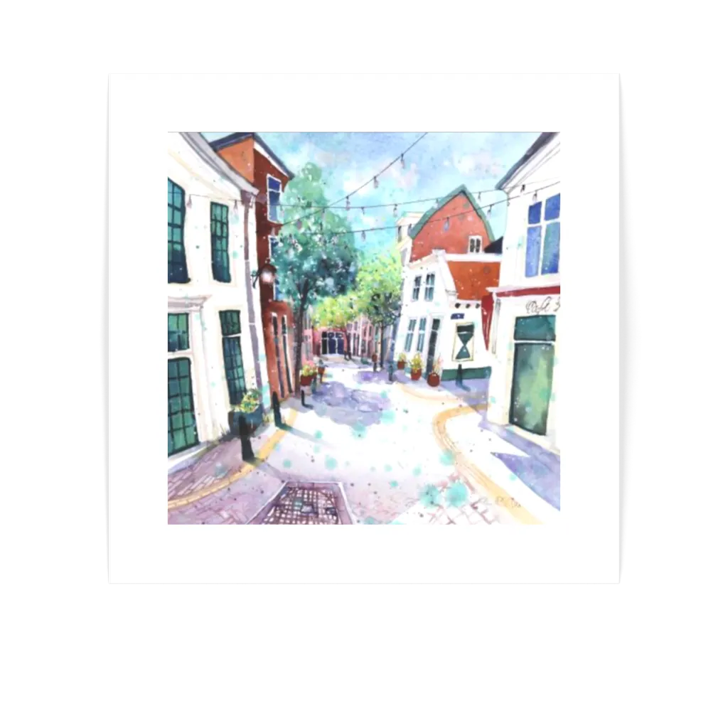 This unique and original contemporary artwork "Breestraat" has been created by the contemporary artist Edith Thurnherr. The artist used watercolor medium on paper to create this small size painting of Haarlem.