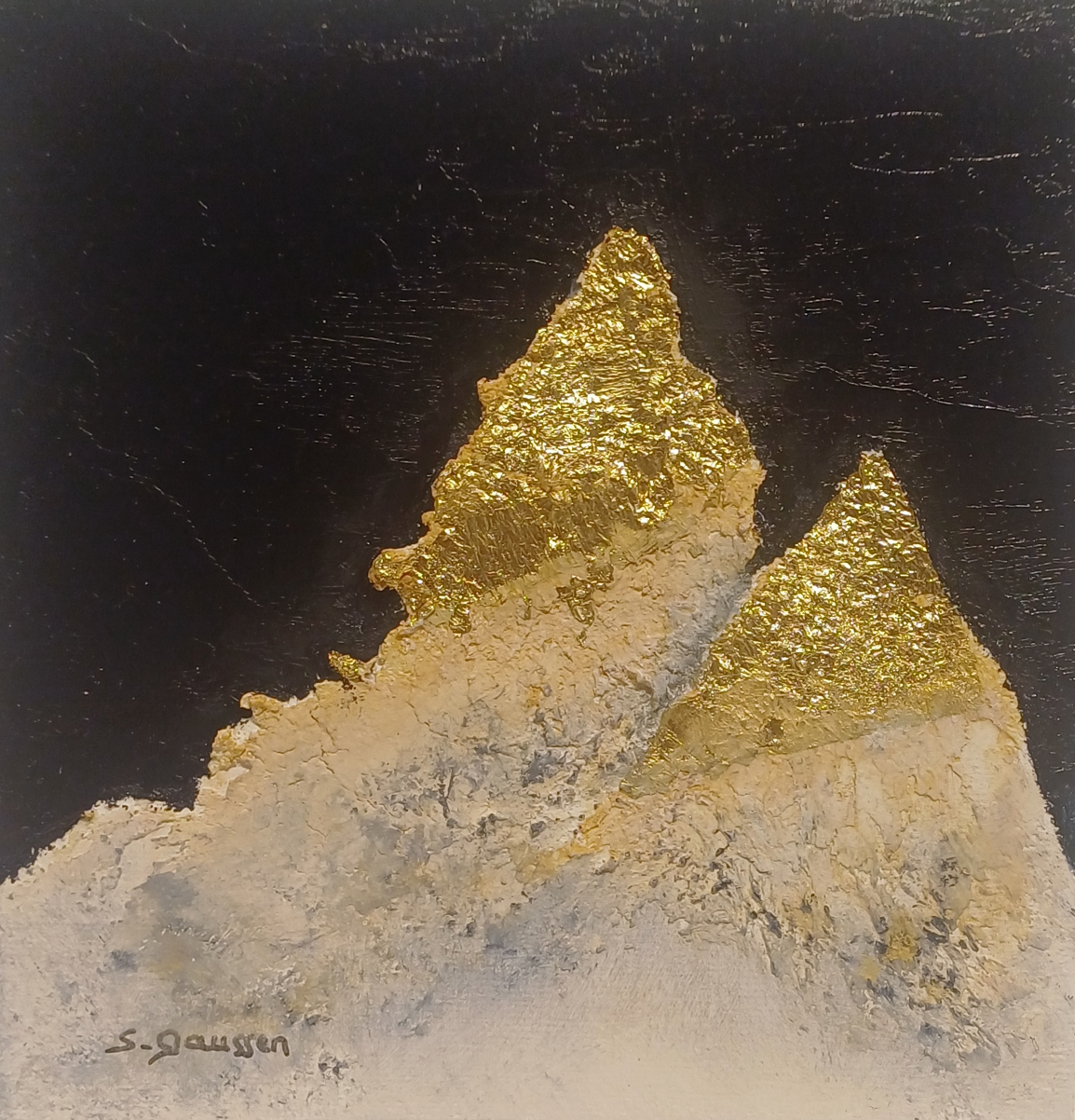 This unique and original contemporary artwork "Beauty in the night 3" was created by contemporary artist Sylvie Gaussen. The artist used various techniques to create this small-format painting in a singular style.