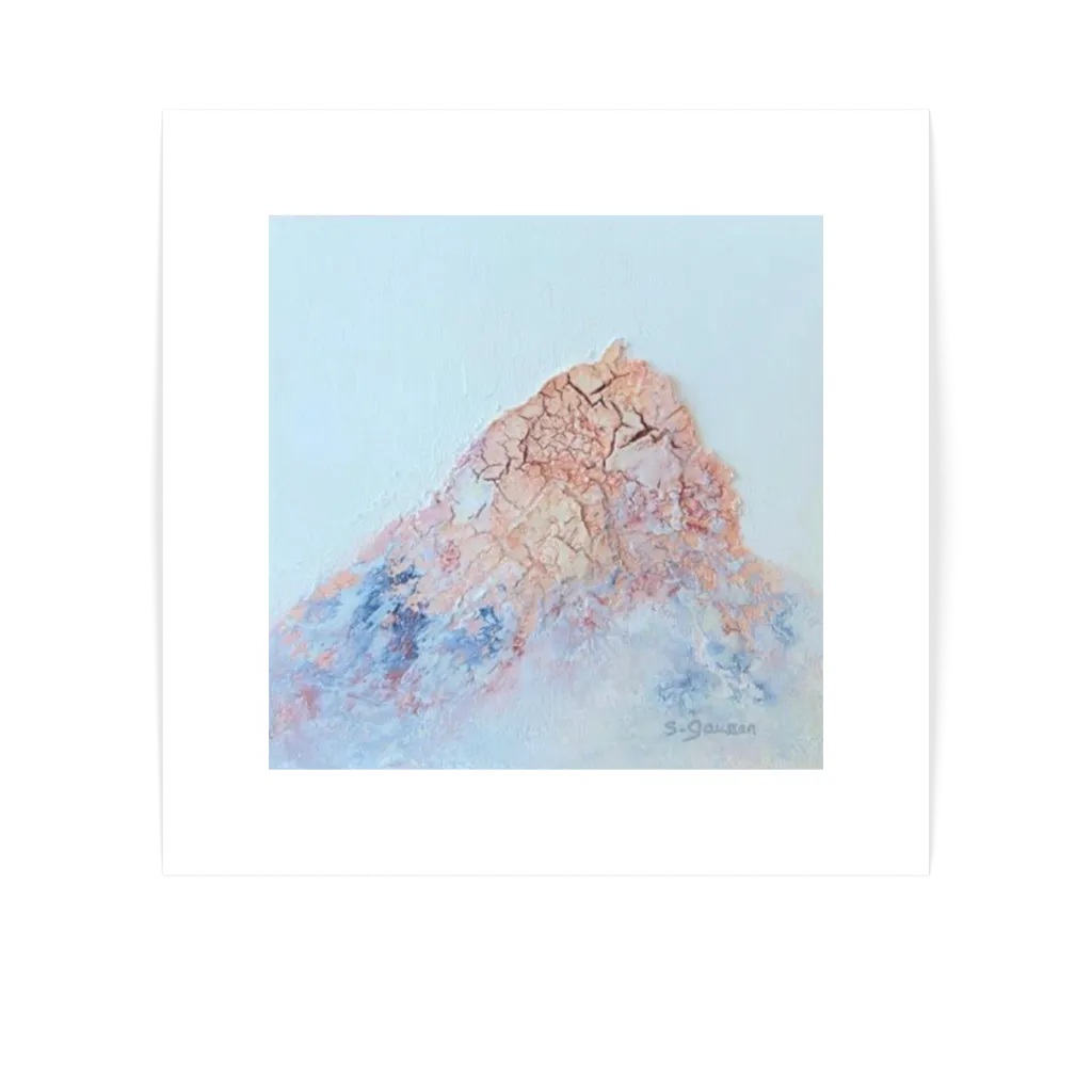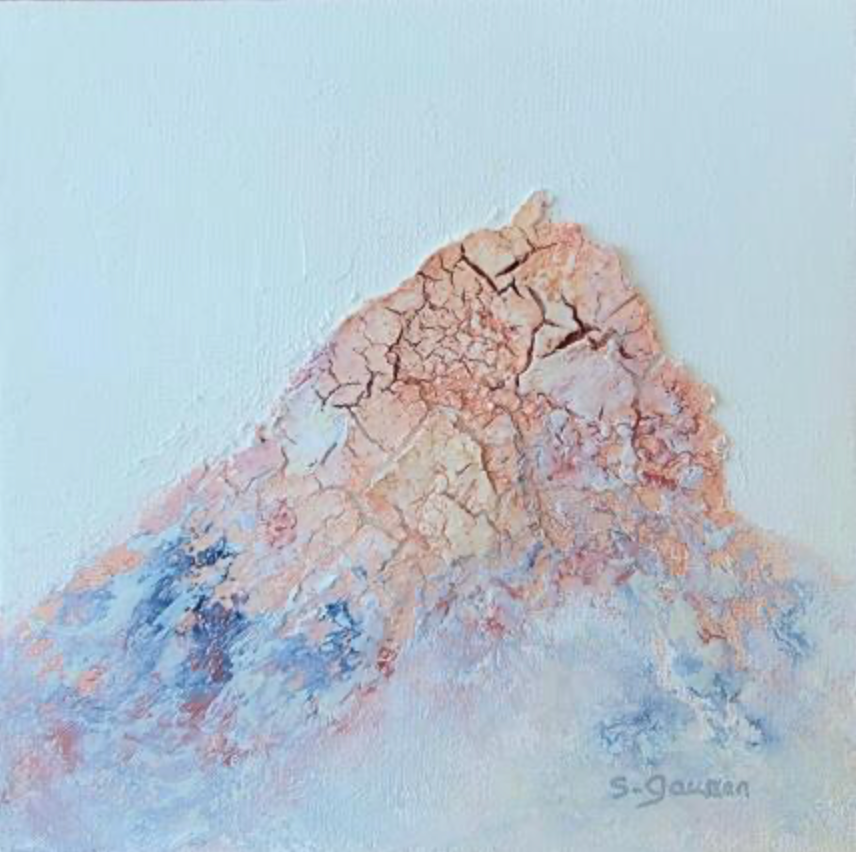 This unique and original contemporary artwork "On the top 2" was created by contemporary artist Sylvie Gaussen. The artist used various techniques to create this small-format painting in a singular style.