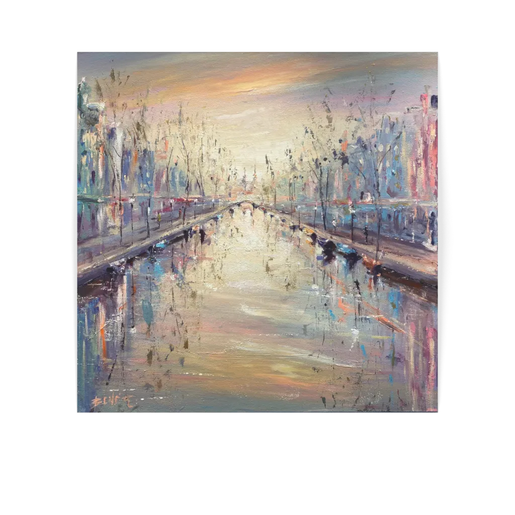 This unique and original contemporary artwork "Canal's calm in winter's embrace" has been created by the contemporary artist Rodrigues Bené. The artist used mixed medium to create this special, Large size painting.