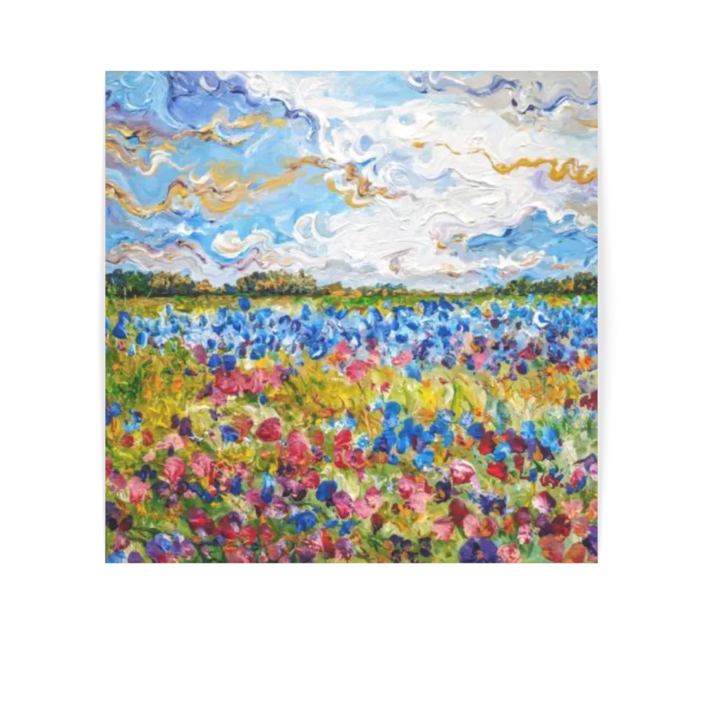 This unique and original contemporary artwork "Champs de fleurs sauvages - n°1" on the subject of flowers has been created by the contemporary artist Florence Amblard. The artist used acrylic medium on canvas to create this large size painting.