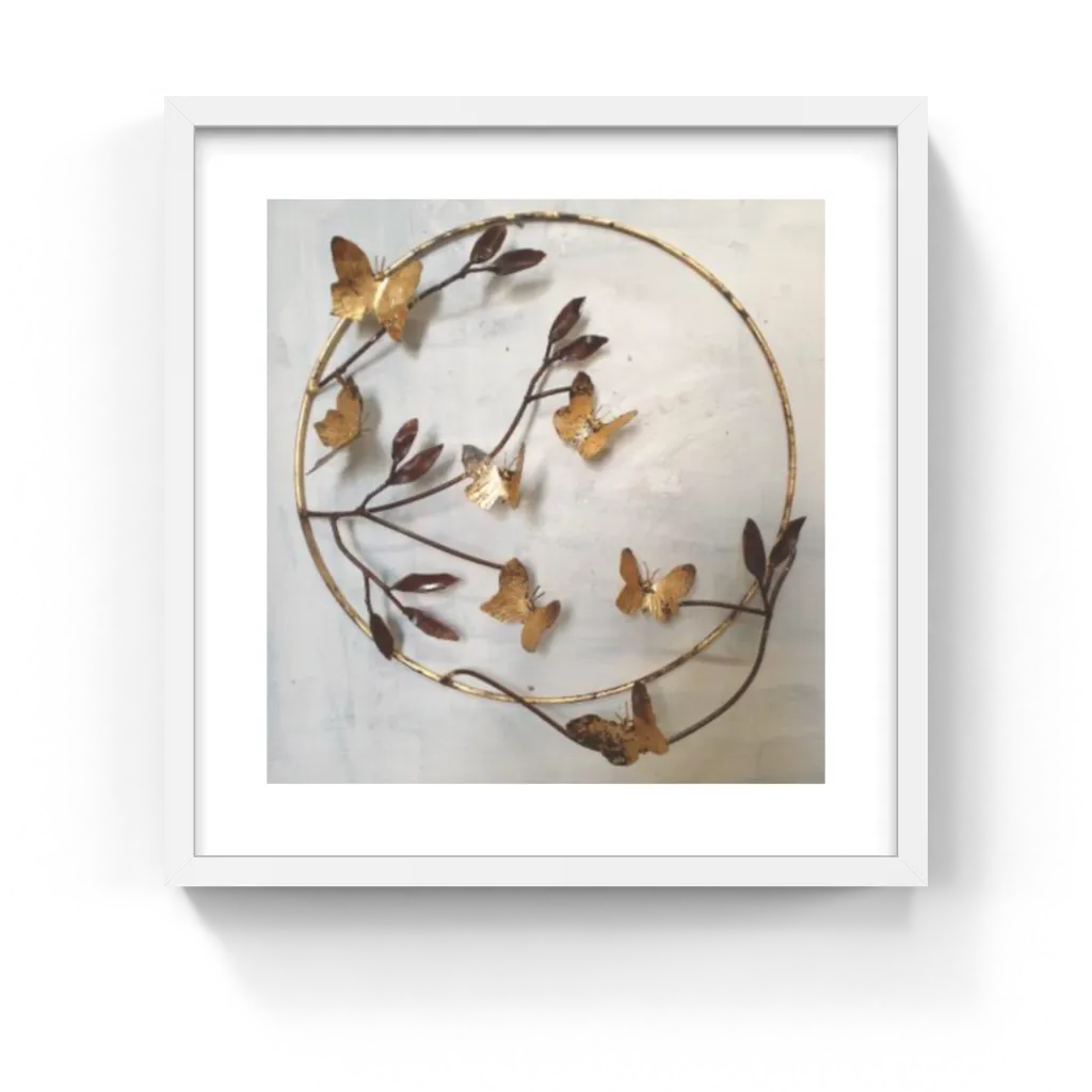 This unique and original contemporary artwork "Circle de vie papillon 1" was created by contemporary artist Nicolas Eres. The artist used metal to create this sculpture of butterflies in the moonlight.