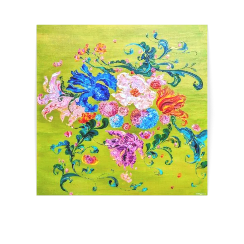 This unique and original contemporary artwork "Composition florale" was created by contemporary artist Amblard Florence. The artist used various techniques to create this large-format painting in a singular style.