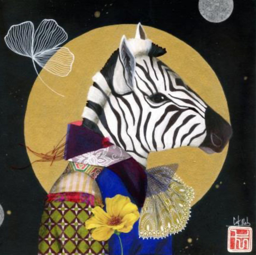 This unique and original contemporary artwork "Felix" has been created by the contemporary artist Catherine Rebeyre. The artist used different techniques, such as acrylics and fabrics, on cardboard to create this naive art, small size painting.