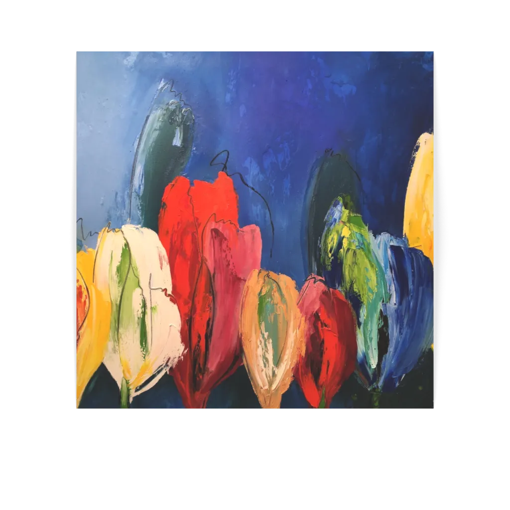 Original artwork " Forever Tulips 188" by artist Tilly Wils in size 80x80 cm. Medium used is acrylic on canvas.