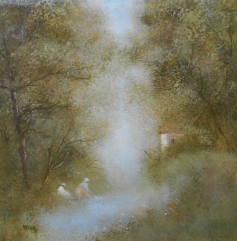 This unique and original contemporary artwork "Les lavandières" has been created by the contemporary artist Francis Moulia. The artist used oil to create this special, small size painting.