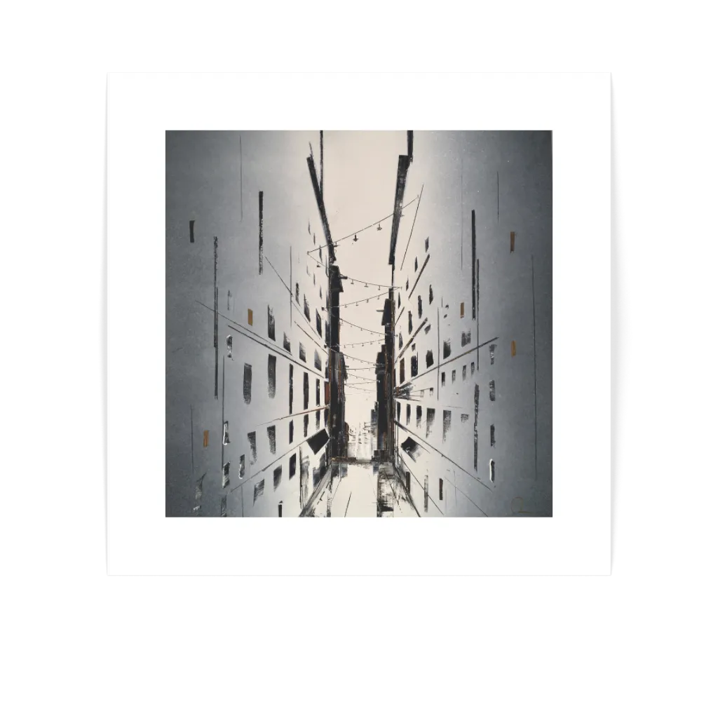 Original artwork "Go Down The Street" by Julien Rey. Medium is lacquer and gold leaf on paper in size 36 x 36 cm.