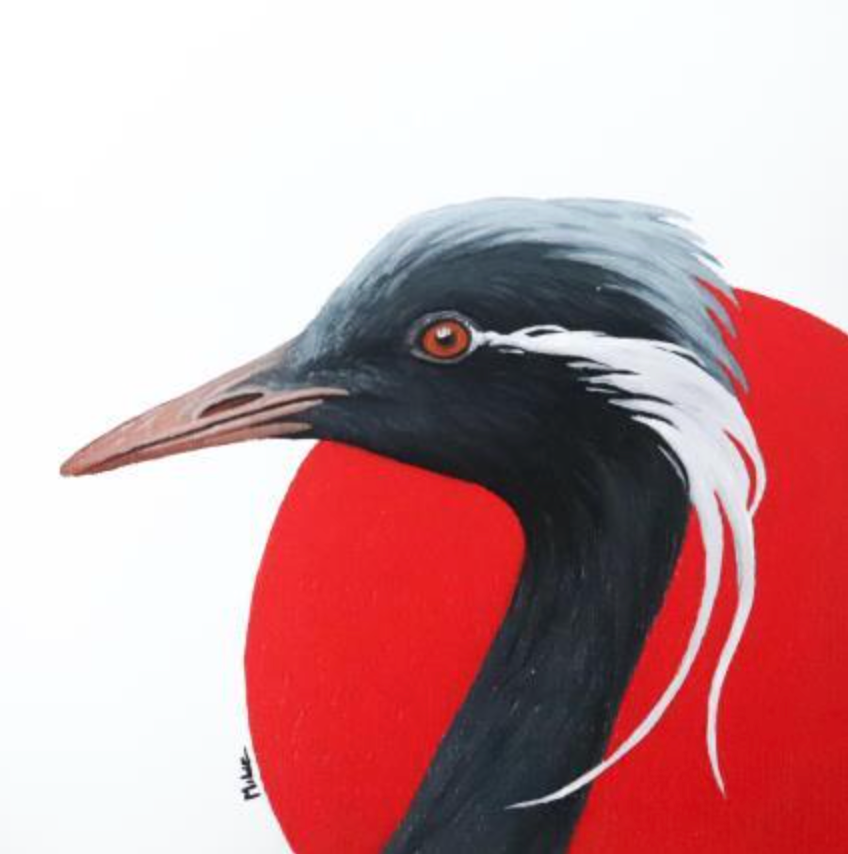 This unique and original contemporary artwork "GOLD AND SUN 6" was created by contemporary artist Milie Lairie. The artist used the technique of oil painting to create this small-format painting on paper in the Realism style on the theme of Animals.