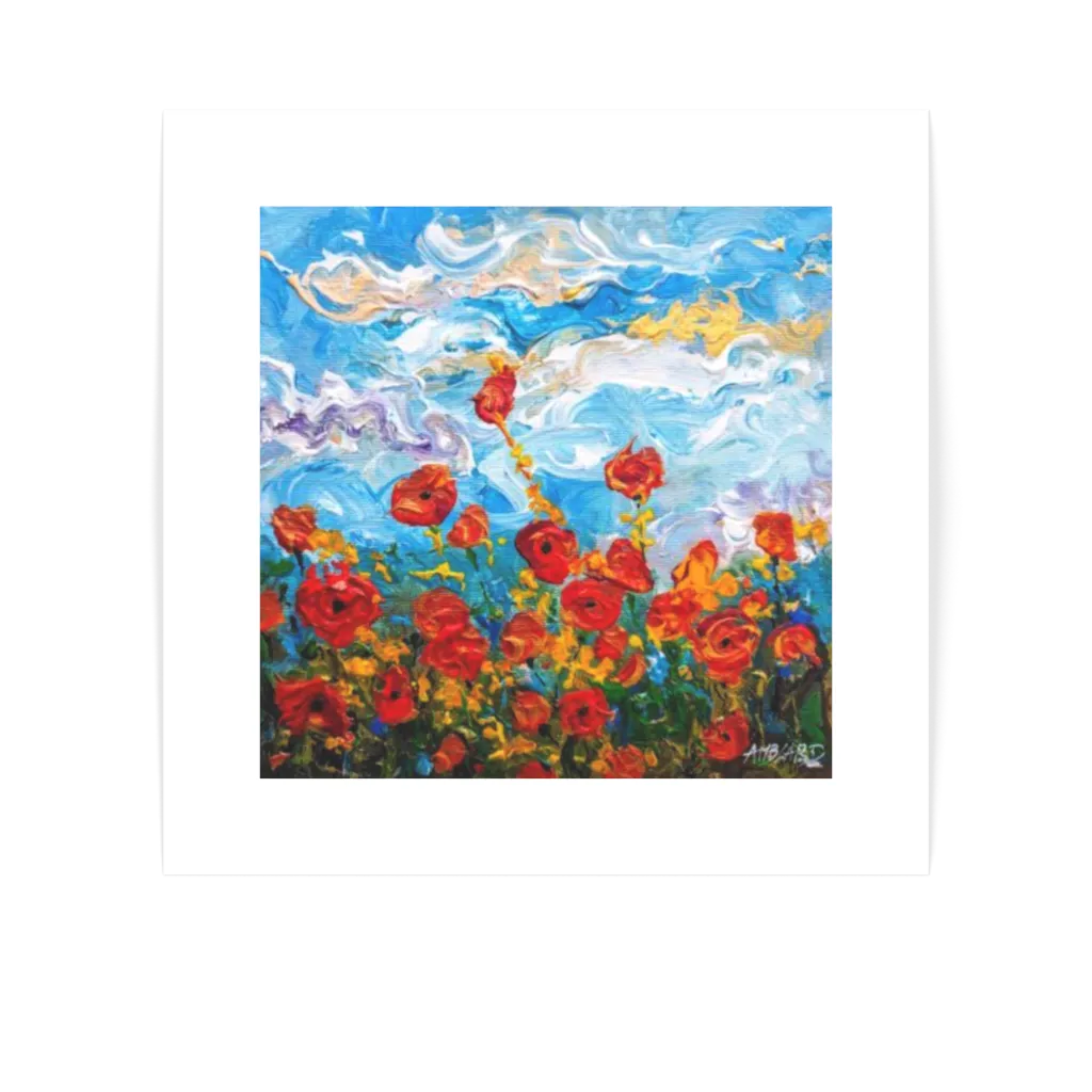 This unique and original contemporary artwork "Golden poppies" on the subject of flowers has been created by the contemporary artist Florence Amblard. The artist used acrylic medium on canvas to create this small size painting.