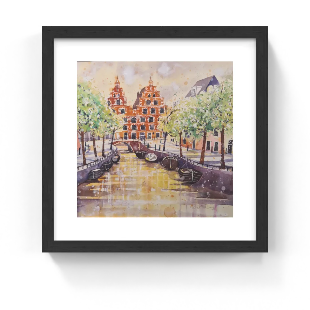 This unique and original contemporary artwork "Haarlem Bakenessergracht" (25200) has been created by the contemporary artist Edith Thurnherr. The artist used watercolor medium on paper to create this realism, small size painting.
