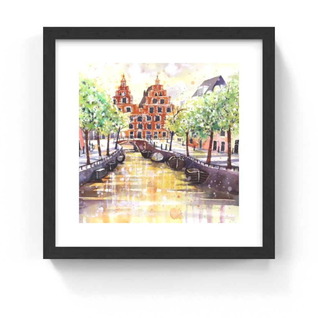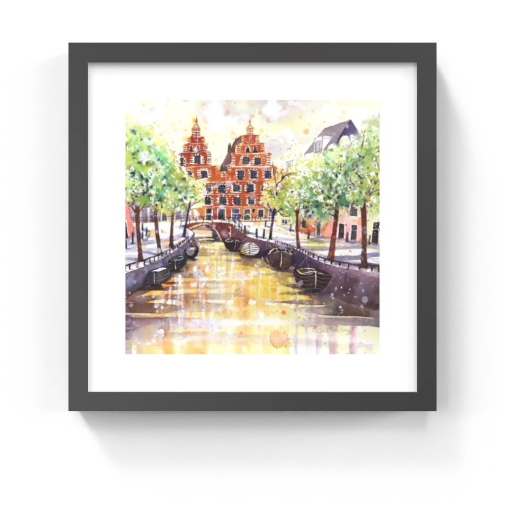 This unique and original contemporary artwork "Haarlem Bakenessergracht" has been created by the contemporary artist Edith Thurnherr. The artist used watercolor medium on paper to create this realism, small size painting.