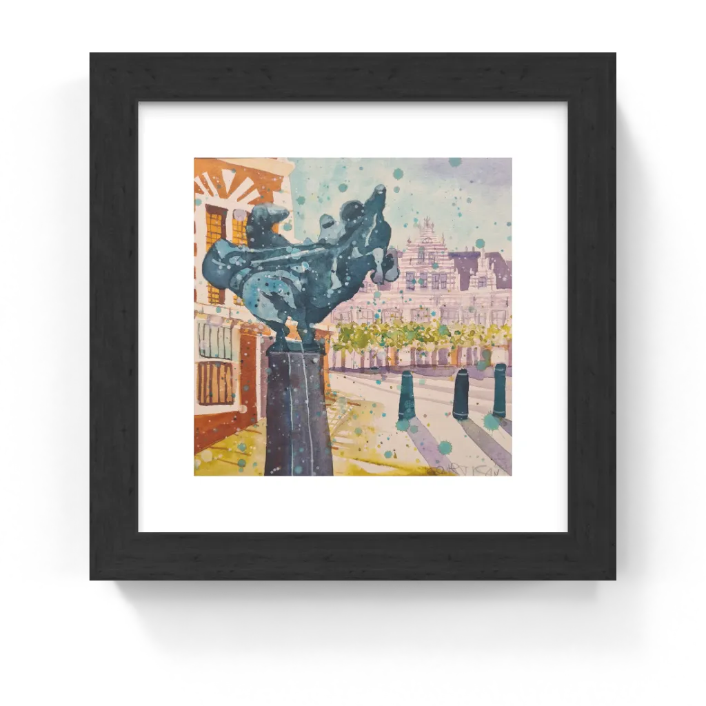 This unique and original contemporary artwork "Haarlem Grote Markt Toernooirijders" (24163) has been created by the contemporary artist Edith Thurnherr. The artist used watercolor medium on paper to create this realism, small size painting.