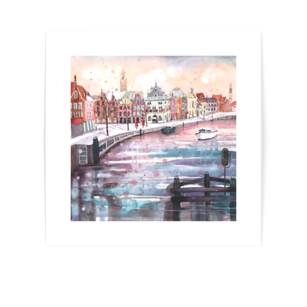 This unique and original contemporary artwork "Haarlem Spaarne" has been created by the contemporary artist Edith Thurnherr. The artist used Watercolor medium on paper to create this urban, small size painting.