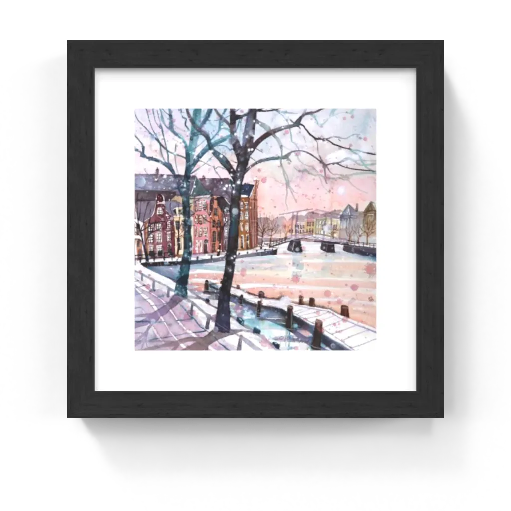 This unique and original contemporary artwork "Haarlem Spaarne Winter Morning" has been created by the contemporary artist Edith Thurnherr. The artist used watercolor medium on paper to create this realism, small size painting.