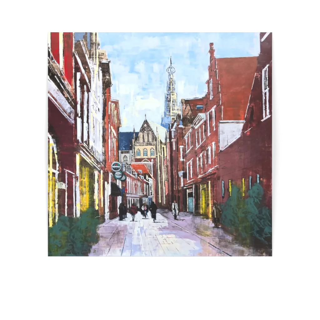 Original artwork "Haarlem Spring" by artist Adrien Faveau in size 100x100 cm. Medium used is oil on wood.
