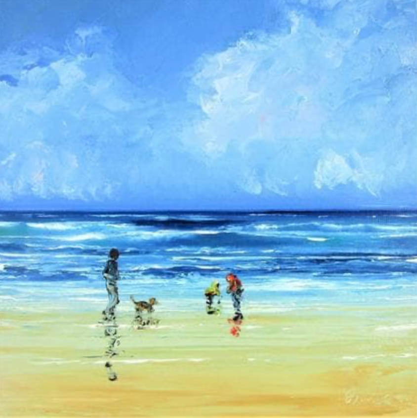 This unique and original contemporary artwork "Jeux d'écume à l'océan" has been created by the contemporary artist Hanniet. The artist used oil medium on canvas board to create this figurative, small size painting.