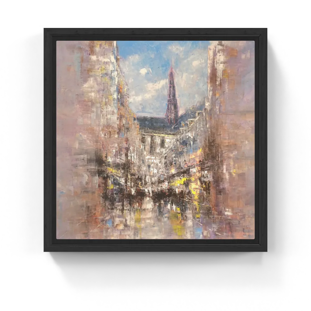 This unique and original contemporary artwork "Reflets automnals" has been created by the contemporary artist Philippe Davroux. The artist used oil medium on canvas to create this impressionist, large size painting of Haarlem.