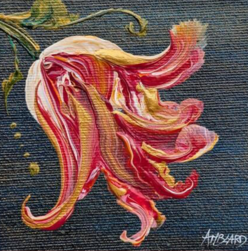 This unique and original contemporary artwork "Jolie petite tulipe" was created by contemporary artist Florence Amblard. The artist used various painting techniques to create this small-format painting in a singular style.