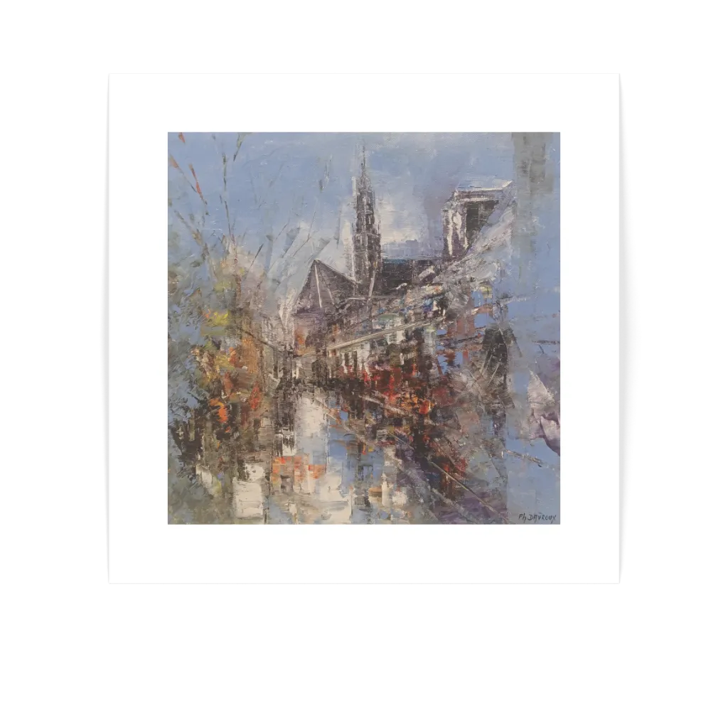 This unique and original contemporary artwork "Sur la droite" has been created by the contemporary artist Philippe Davroux. The artist used oil medium on stretched canvas to create this impressionist, small size painting of Haarlem.