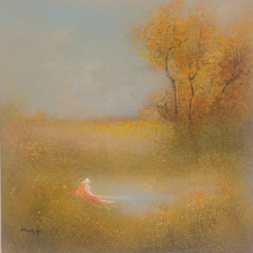 This unique and original contemporary artwork "Les glaneuses" has been created by the contemporary artist Francis Moulia. The artist used oil to create this special, small size painting.