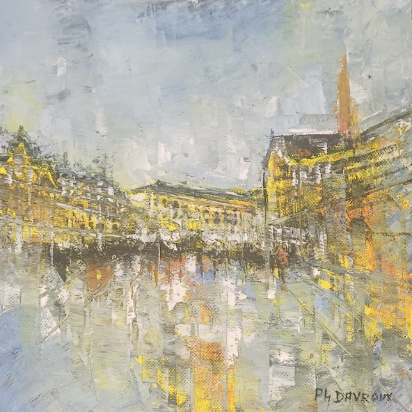 This unique and original contemporary artwork "La place" has been created by the contemporary artist Philippe Davroux. The artist used oil medium on canvas to create this impressionist, small size painting of Haarlem.