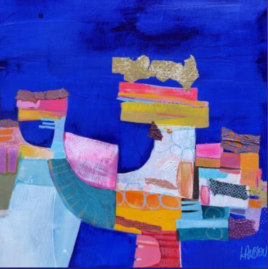 This unique and original contemporary artwork "Lac et falaise" has been created by the contemporary artist Lau Blou The artist used mixed media to create this large size painting.