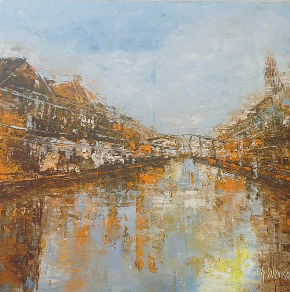 This unique and original contemporary artwork "L'automne" has been created by the contemporary artist Philippe Davroux. The artist used oil medium on stretched canvas to create this impressionist, small size painting of Haarlem.