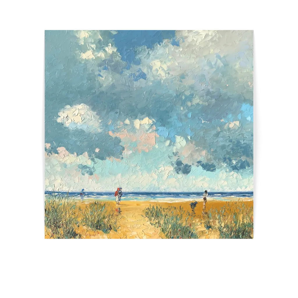 This unique and original contemporary artwork "L'éclaircie toujours nous guide" was created by contemporary artist Hanniet. The artist used the oil technique to create this large-format painting in the figurative style of the beach.