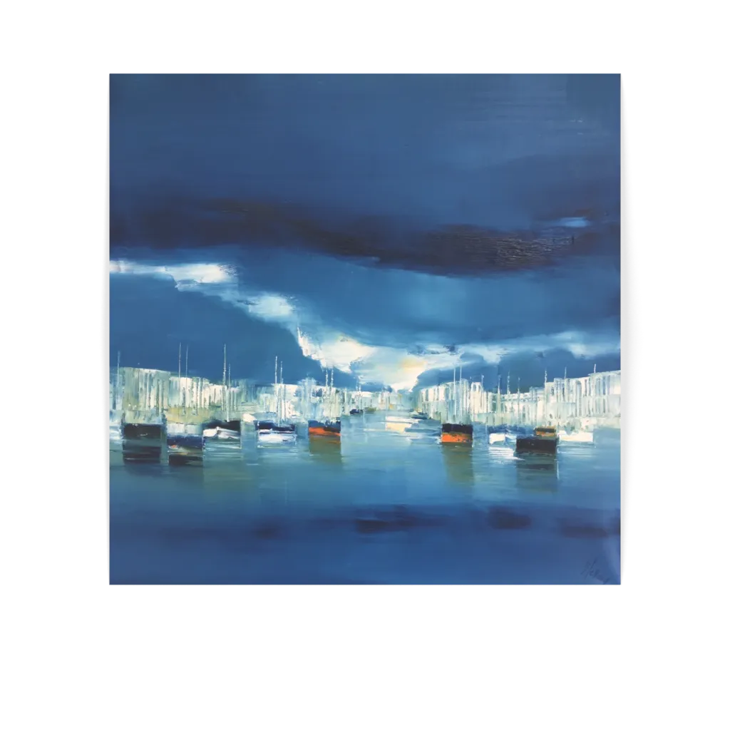 Original artwork "Les 7 bateaux" by artist Alain Heraud in size 80x80 cm. Medium used is oil on canvas.