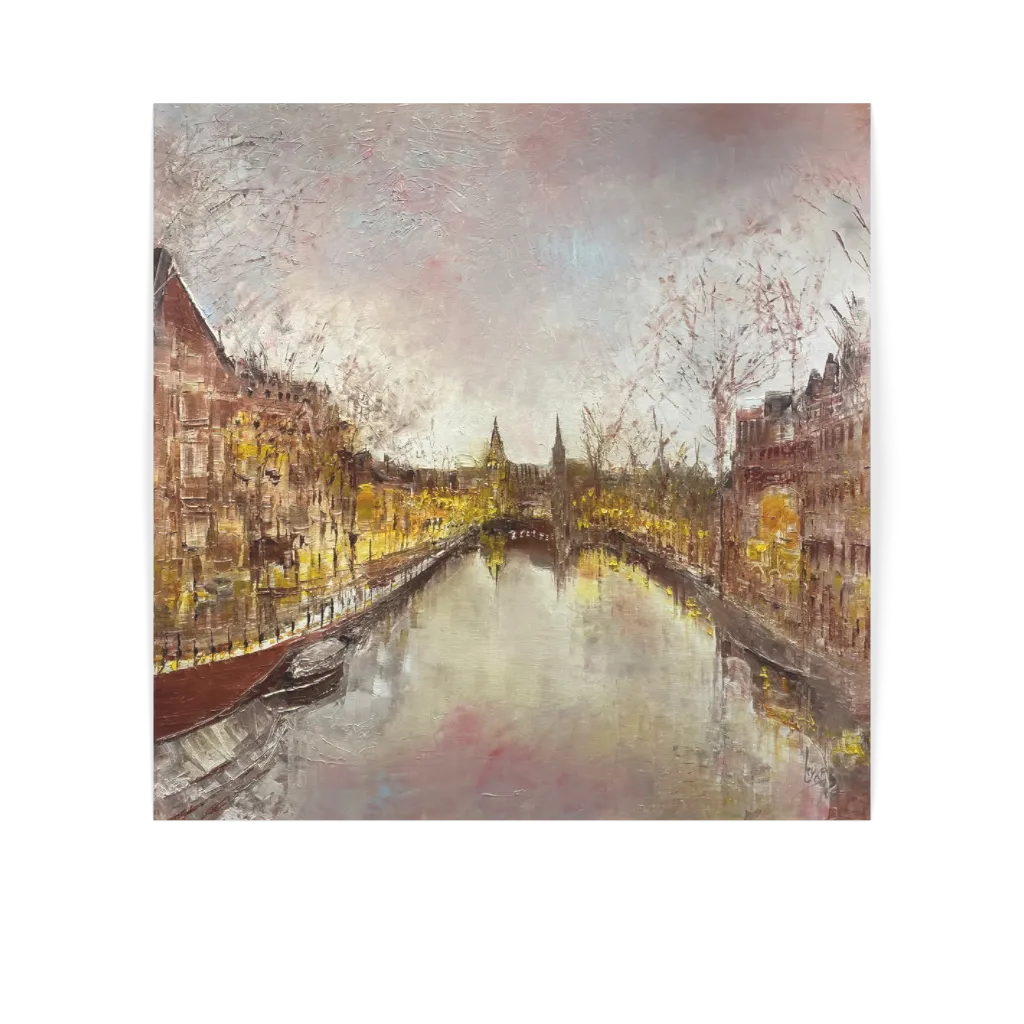 This unique and original contemporary artwork "Les arbres du canal" has been created by the contemporary artist Levesque Emmanuelle. The artist used Oil medium on Canvas to create this special, Large size painting.
