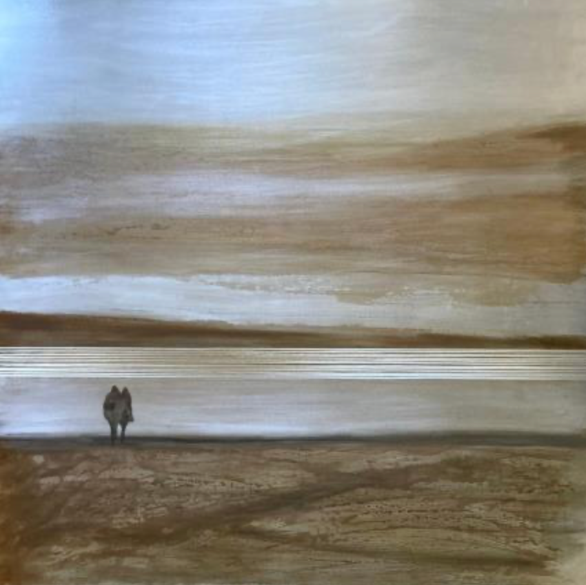 This unique and original contemporary artwork "L'étang de THAU" was created by the contemporary artist Mahieu Bertrand. The artist used an oxidation technique on steel sheet to create this large format painting.