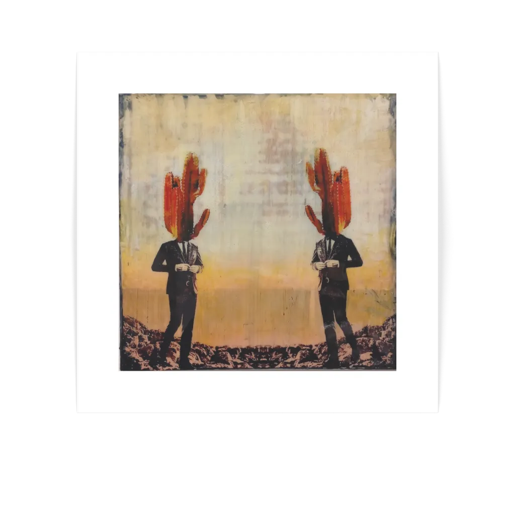 This unique and original contemporary artwork "Los cabeza cactus" has been created by the contemporary artist Laura Bofill. The artist used acrylic and resin media to create this figurative, small size painting.