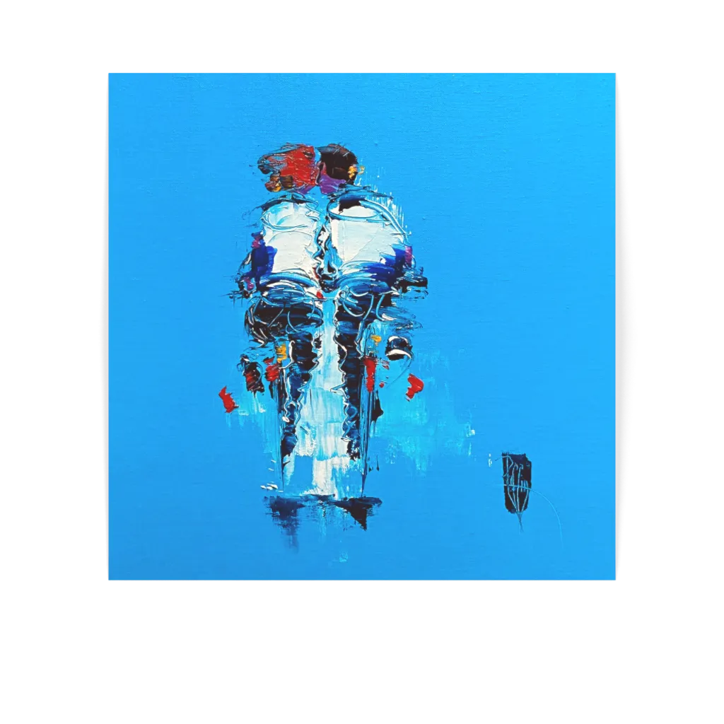 This unique and original contemporary artwork "L'un contre l'autre" on the subject of bikers has been created by the contemporary artist Christian Raffin. The artist used oil medium on canvas to create this figurative, large size painting.