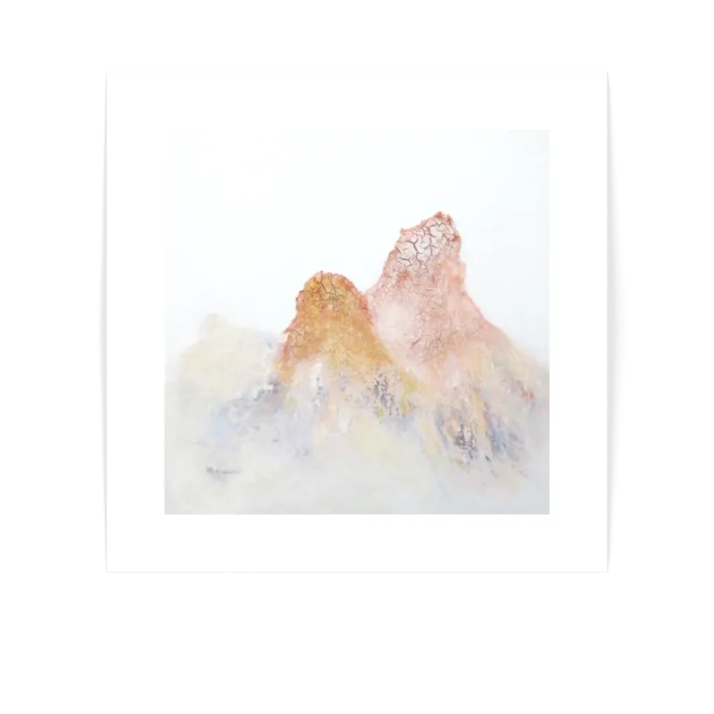 Original artwork "Majestueux Sommets" by artist Sylvie Gaussen in size 36x36 cm. Medium used is mixed media.