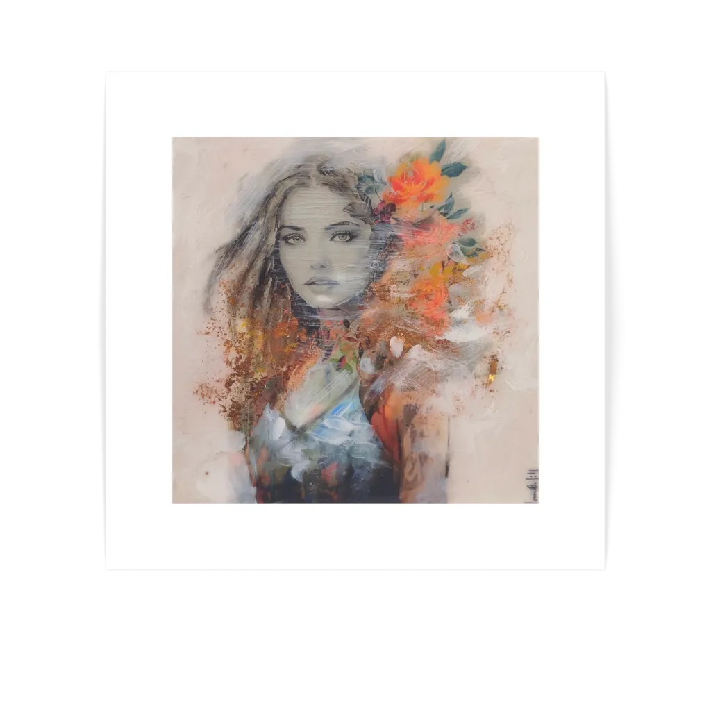 This unique and original contemporary artwork "Marta I" has been created by the contemporary artist Laura Bofill. The artist used acrylic, rose leaf, and resin media to create this figurative, small size painting.