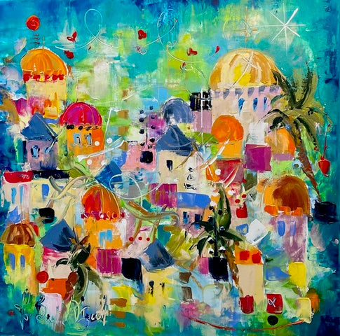 This unique and original contemporary artwork "Méditerranée " has been created by the contemporary artist Bastide d´Izard Armelle. The artist used oil on canvas to create this abstract painting, in size 80x80 cm.