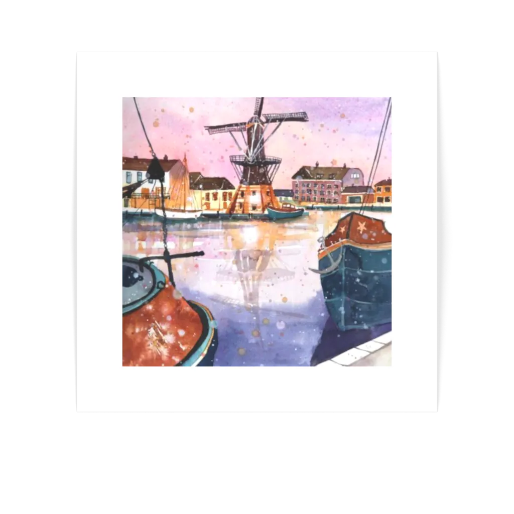 This unique and original contemporary artwork "Molen de Adriaan" has been created by the contemporary artist Edith Thurnherr. The artist used Watercolor medium on paper to create this urban, small size painting.