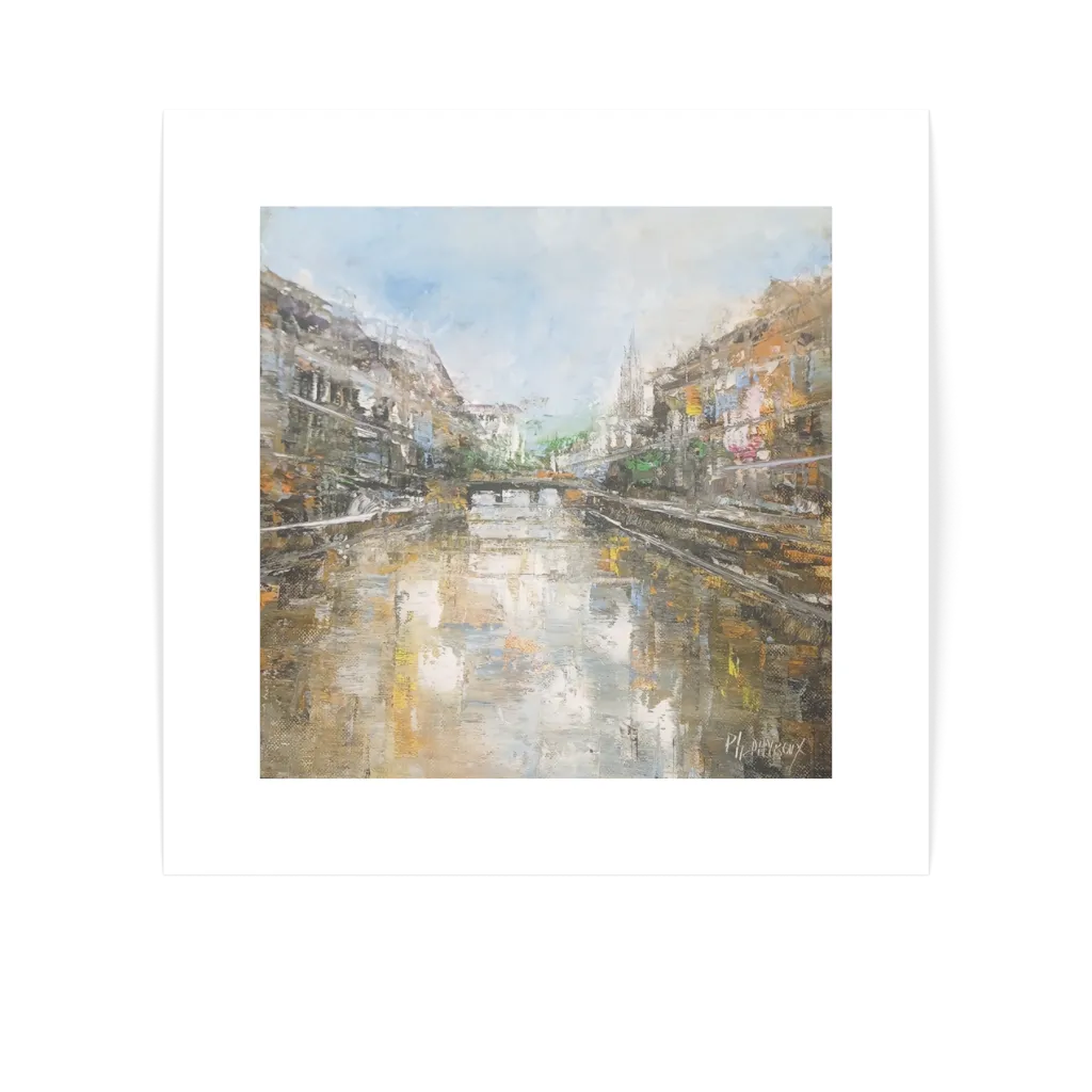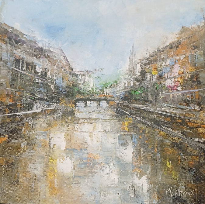 This unique and original contemporary artwork "Belle journée en perspective" has been created by the contemporary artist Philippe Davroux. The artist used oil to create this impressionist, small size painting of Haarlem.