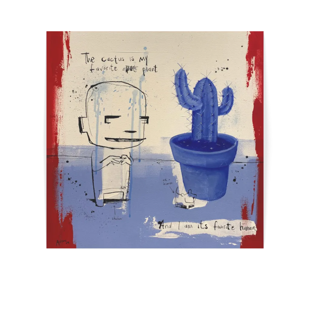 This unique and original contemporary artwork "My favorite plant the cactus " on the subject of Society has been created by the contemporary artist Jan Hein Arens. The artist used Acrylic, Ink media on Paper to create this Raw art, Large size painting.