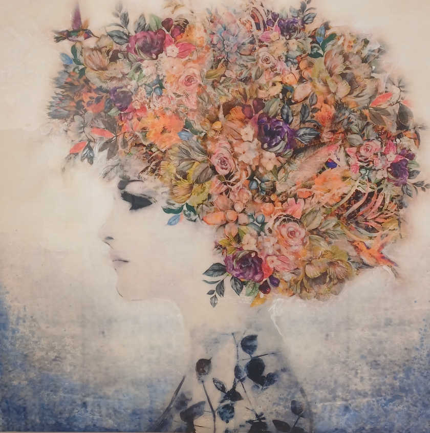This unique and original contemporary artwork "Natural y ser" has been created by the contemporary artist Laura Bofill. The artist used acrylic and resin media on wood to create this figurative, large size painting.