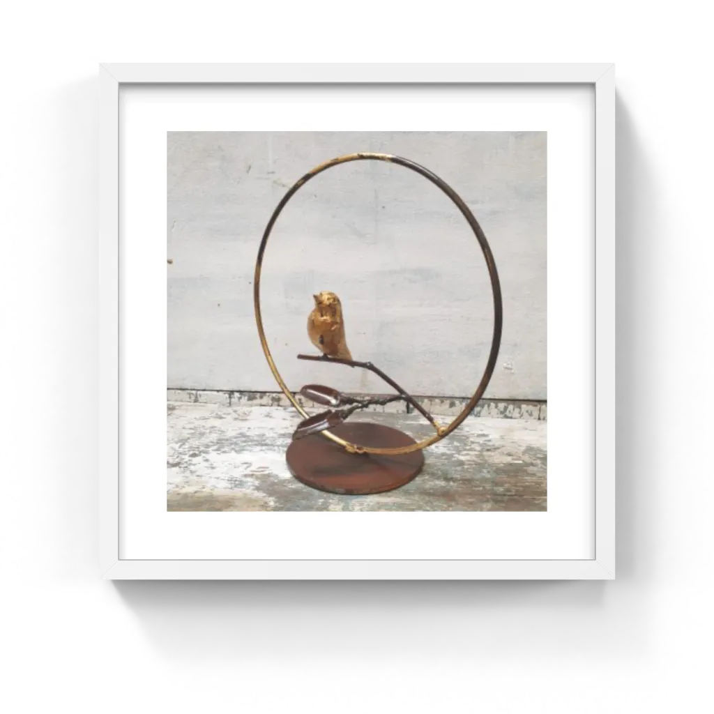 This unique and original contemporary artwork "Oiseau sur branche" was created by contemporary artist Nicolas Eres. The artist used metal to create this sculpture of a butterfly.